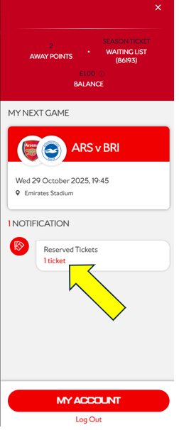 Any purchased tickets will automatically show on the digital pass approximately one week before the relevant fixture.