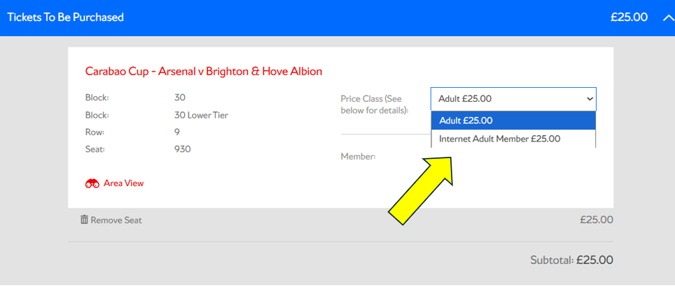 If you hold a concession season ticket, your seat has already been reserved to the correct concession. You will be able to amend this online when booking should you wish to upgrade to an adult ticket. Please note if you upgrade but wish to change back before making a purchase, you will need to log out and log back in to default your seat back to the original concession.
