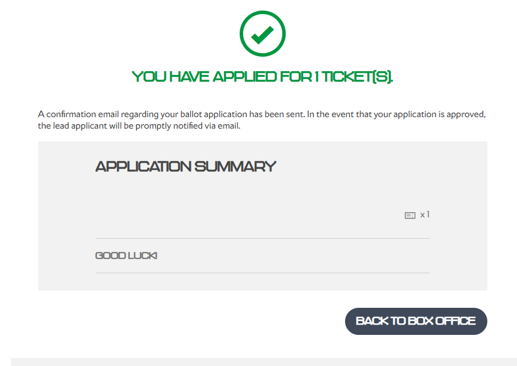 You will then see a confirmation page confirming that you have successfully registered for the ballot.