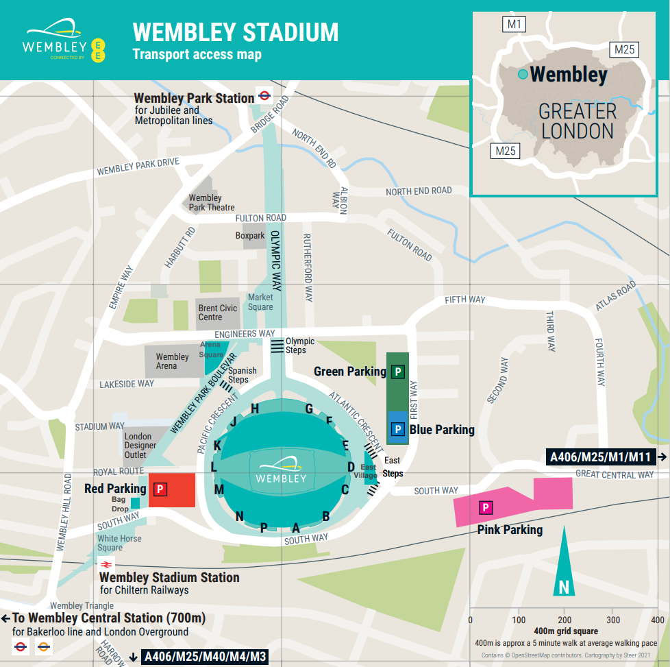 - Arsenal supporters have been allocated the Green Car Park - for details regarding parking at Wembley stadium, please click here.